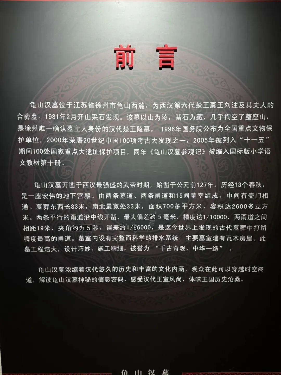 看了一遍不过瘾,我竟又重新走了一趟,感悟着这汉墓雕琢细致入微,既有汉王朝的雄浑厚重,又有楚文化的浪漫恣肆,