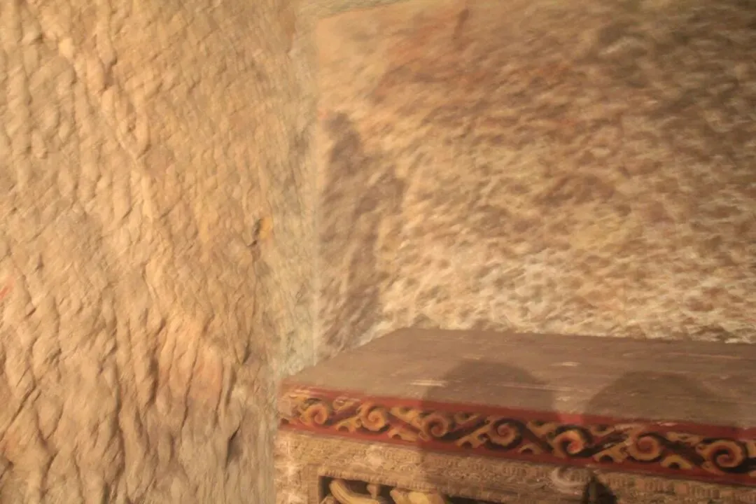 无法解释的“崖壁画”之谜,楚王棺室北面墙上清楚地显示着一位真人大小的影子,身着汉服,峨冠博带,做拱手迎宾状,写着“楚王迎宾”的介绍,令人费解的是,这一现象是墓室开放后逐渐形成的,而影子外却没有任何渗水的痕迹,真是不可思议,不敢乱猜......