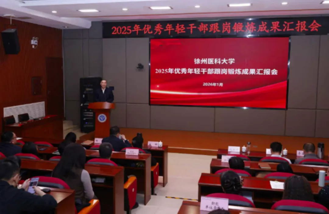 为系统总结优秀年轻干部跟岗锻炼成效,进一步完善年轻干部培养长效机制,1月15日下午,徐州医科大学在行政楼101会议室召开2025年优秀年轻干部跟岗锻炼成果汇报会。校领导班子成员、挂职干部派出与接收单位主要负责人、二级党组织书记、职能部门负责人及全体挂职干部参加会议。