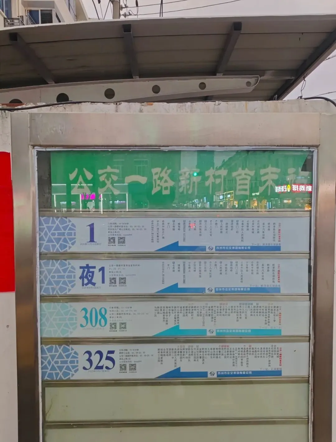 公交一路新村首末站位于江苏省苏州市吴中区枫津路48号,现有苏州市公交集团有限公司姑苏公司1路、夜1路、325路;苏州市公交集团有限公司新区公司308路。