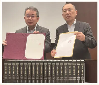2025年7月,吴先斌(右)向日本立命馆大学捐赠《世界记忆名录———南京大屠杀档案》。2025年8月,志愿者团队举办“歌壮山河”诗词朗诵会。写在前面