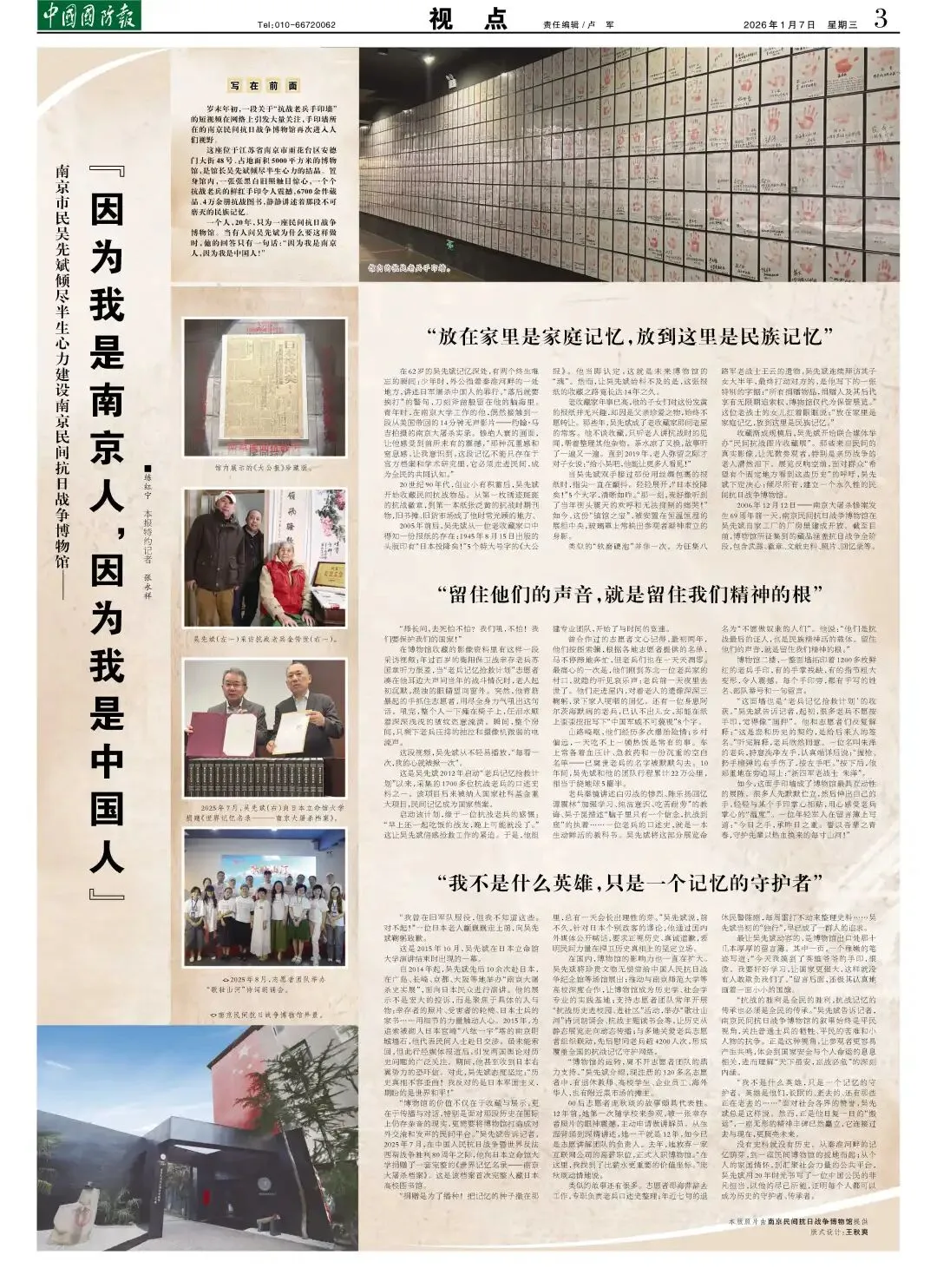 没有史料就没有历史。从秦淮河畔的记忆萌芽,到一座民间博物馆的拔地而起;从个人的家国情怀,到汇聚社会力量的公共平台,吴先斌用20年时光书写了一位中国公民的非凡担当,以他的尽己所能,证明每个人都可以成为历史的守护者、传承者。