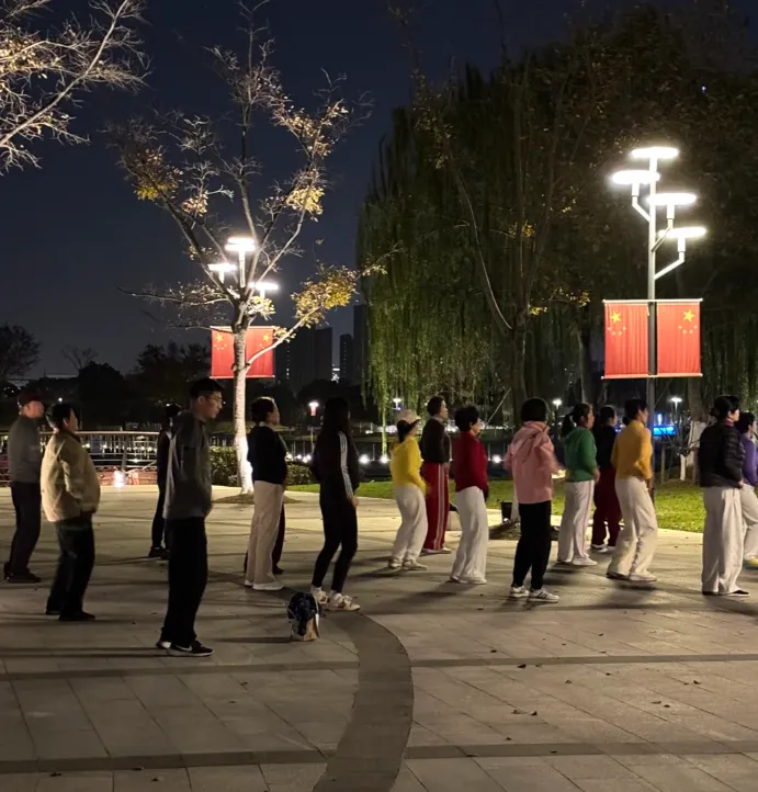 紫裤阿姨看见我,向我挥手,我挥手微笑,她转过头继续跳。当我跳到“甜心”的时候,我的动作慢了下来,街灯刚亮,橘黄色的灯光照在我汗流浃背的脸上。