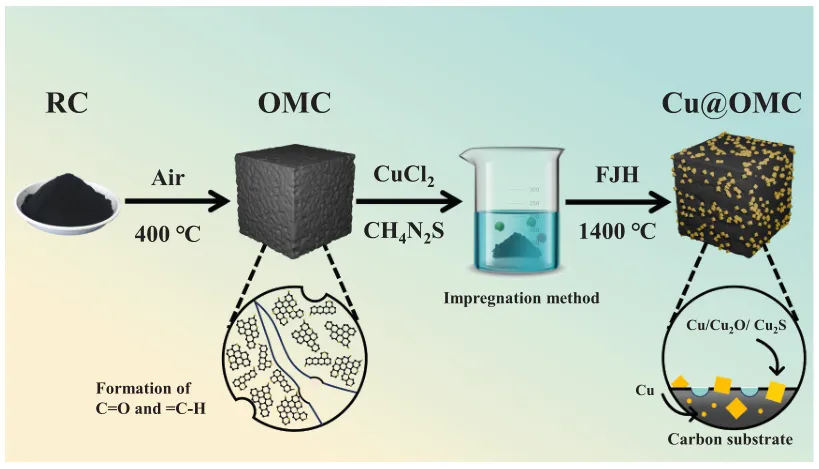 图1:Cu@OMC异质结构电极的合成过程示意图