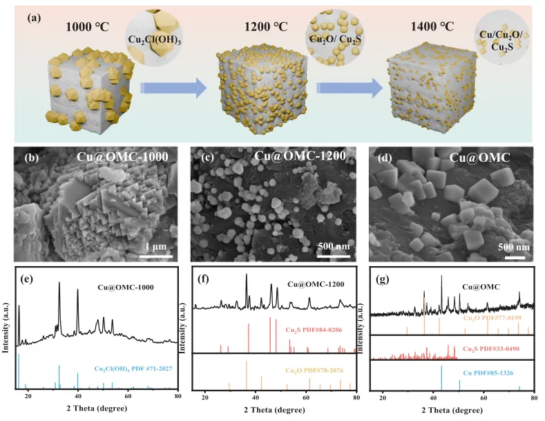 图3:不同温度下Cu@OMC的形貌与结构演变