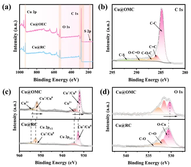 图5:Cu@OMC与Cu@RC的表面化学状态分析
