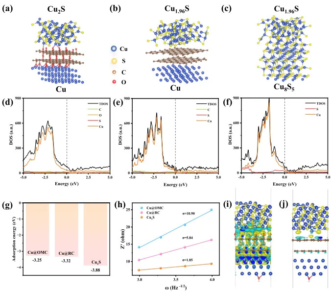 图8:DFT计算揭示异质结构的电子结构与吸附行为