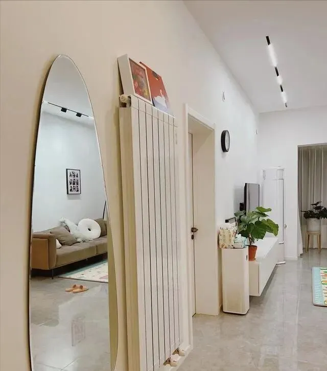 斜对面挂了一面造型很飘逸的镜子 , 有点INS风那味儿 , 出门前照一下 , 心情都好。