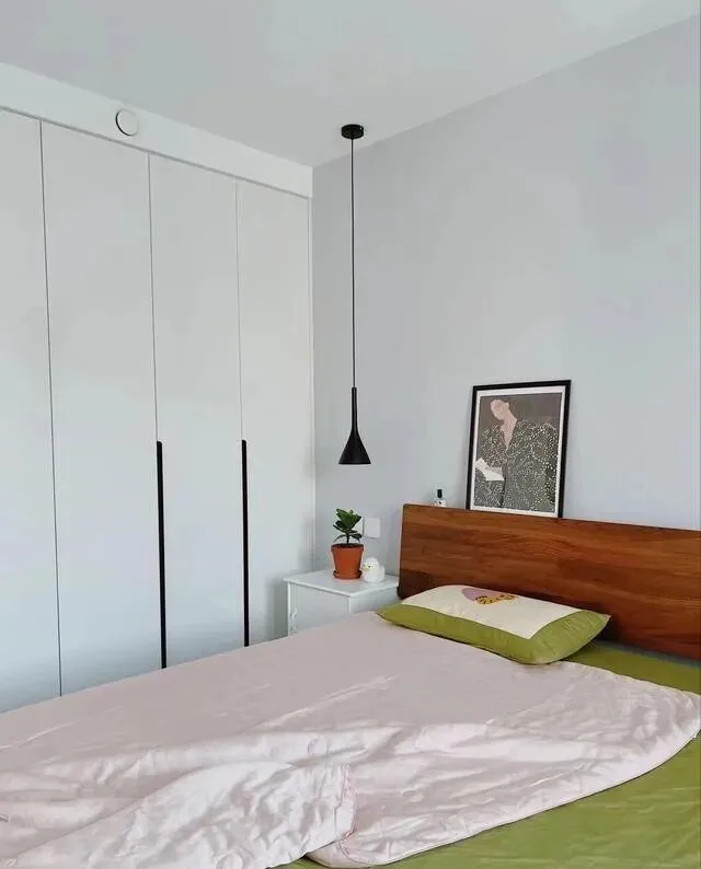 卧室墙是纯白的 , 干净。