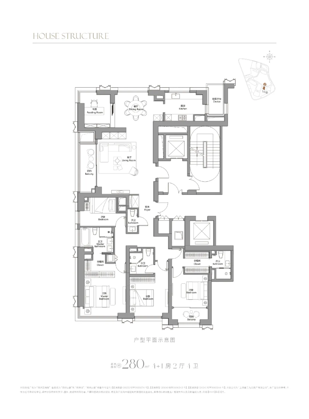 上海的豪宅市场,正在被全中国的客户盯着!以黄浦新天地的豪宅为例,上半年开盘售罄的中海项目,外地购房者则达到了403组,占比高达54.8%。人民广场板块唯一的住宅供应+苏州河旁,这样的地段不仅是老钱的最爱,也是全国富豪的趋之若鹜的地段,是身份认同感和尊贵感的象征在市中心住宅以超高层供应为主流的背景下,黄浦小高层住宅是极为稀缺的。上海大多小高层的得房率在73%-76%之间,海玥黄浦源却能够做到约81%,按照一平米14.5万的均价来算,实打实地给足性价比!无论是当下居住的舒适度,还是未来在市场上的流通性,都极为珍稀!项目外立面上,以古铜色、深灰色等古典色调,配合大面积的玻璃、铝板等现代材质。通过竖向线条和立面层次,突出超高层建筑的挺拔姿态,整体与塔冠、基座形成不同层次的建筑体系。三大景观轴线分别是:迎宾轴线、会客轴线、花园轴线。迎宾轴线:社区入口区域,礼仪府门+老洋房(入口大堂)+海派花园户型图如下: