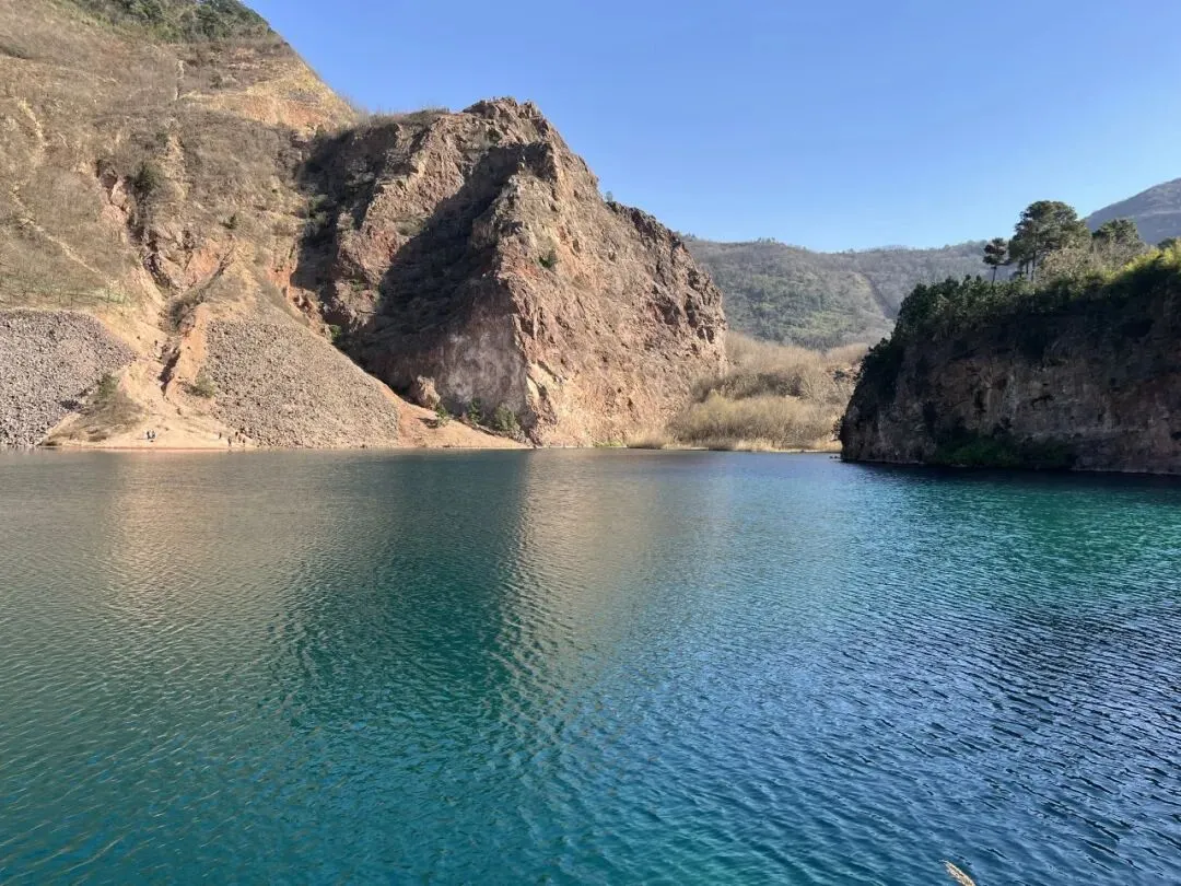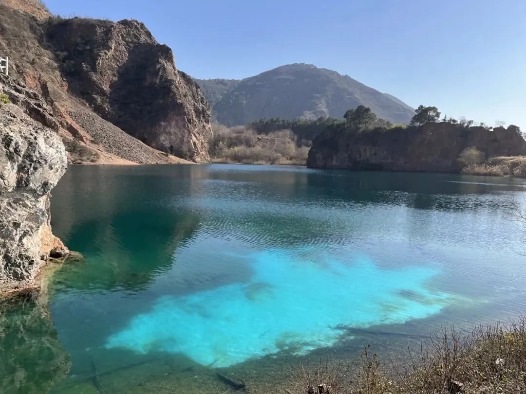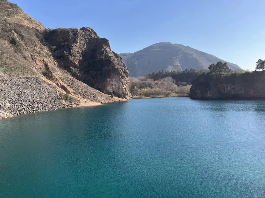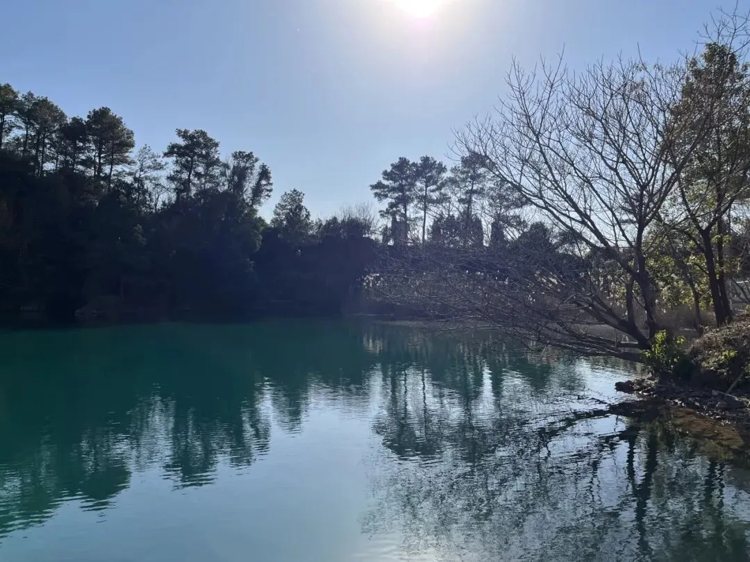 翡翠湖,原为高岭土矿场遗留废弃的矿坑,富含矿物质,积水后因矿物质折射,在阳光下形成蒂芙尼蓝至翡翠绿的渐变效果,灰白色矿坑崖壁与碧色湖水形成强烈视觉对比。 所以,才有“苏州人的小九寨沟”之称~