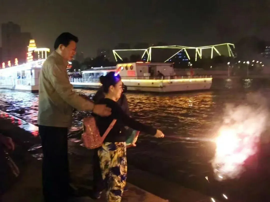 天津海河边。出去老张也是时刻保护着闺女,我是自己玩自己的