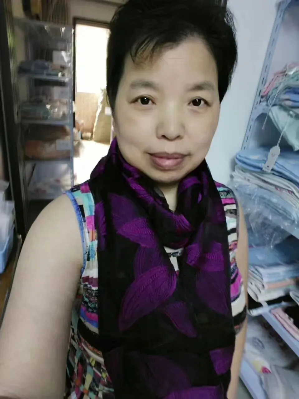 围巾不错吧,不过大夏天戴围巾不伦不类了,拍个照像围个“火巾”,赶紧取下来