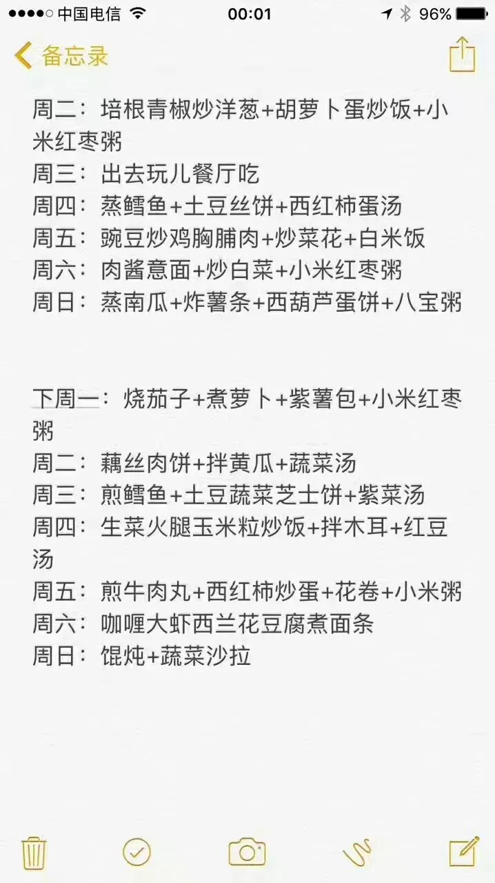 2017.8.1闺女在家里一直远庖厨,儿子把她改变成大厨。看看她朋友圈发的儿子的菜谱。