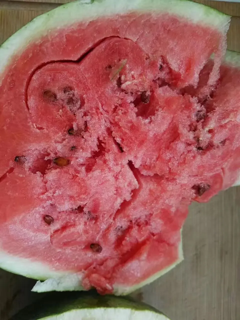 昨天买西瓜,我问卖瓜的女子,瓜好不好?她轻轻拍了下,说,沙瓤。我听了也没入心,哪能这么准呢?隔皮猜瓜的。切开一看,沙瓤!我最爱的沙瓤!可遇不可求!今年第一次吃到沙瓤。