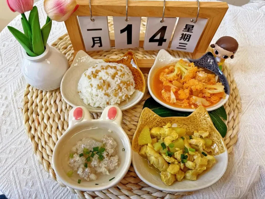 美味菜饭(肉丝15g、鸡蛋10g、青菜20g、小中大班:大米60g/托班:大米40g)
