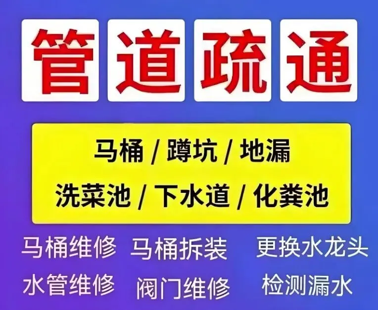 | 管道疏通 | 家用及大型疏通机处理各类疑难堵塞,专业疏通卫生间、地漏、浴缸、菜池、马桶等管道 |