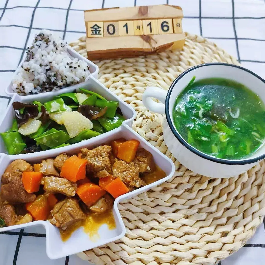山药荷兰豆、小青菜紫菜虾皮汤