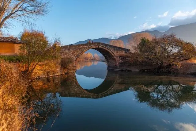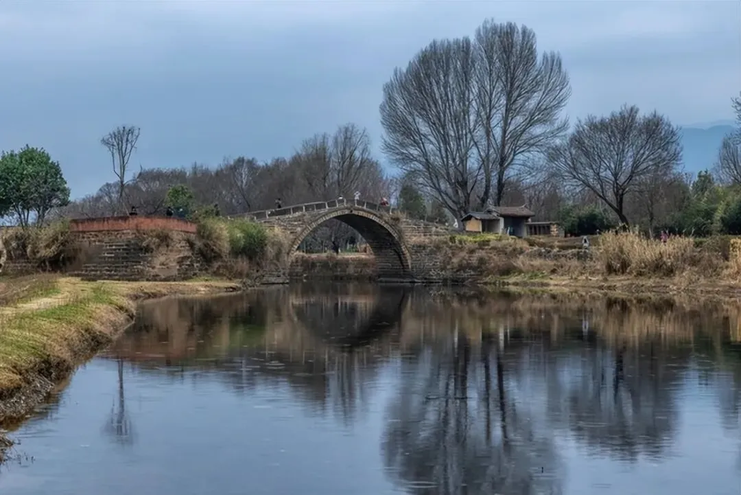 沙溪永安桥侧:桥拱+水面打圆,人走桥上,像在画里穿行。