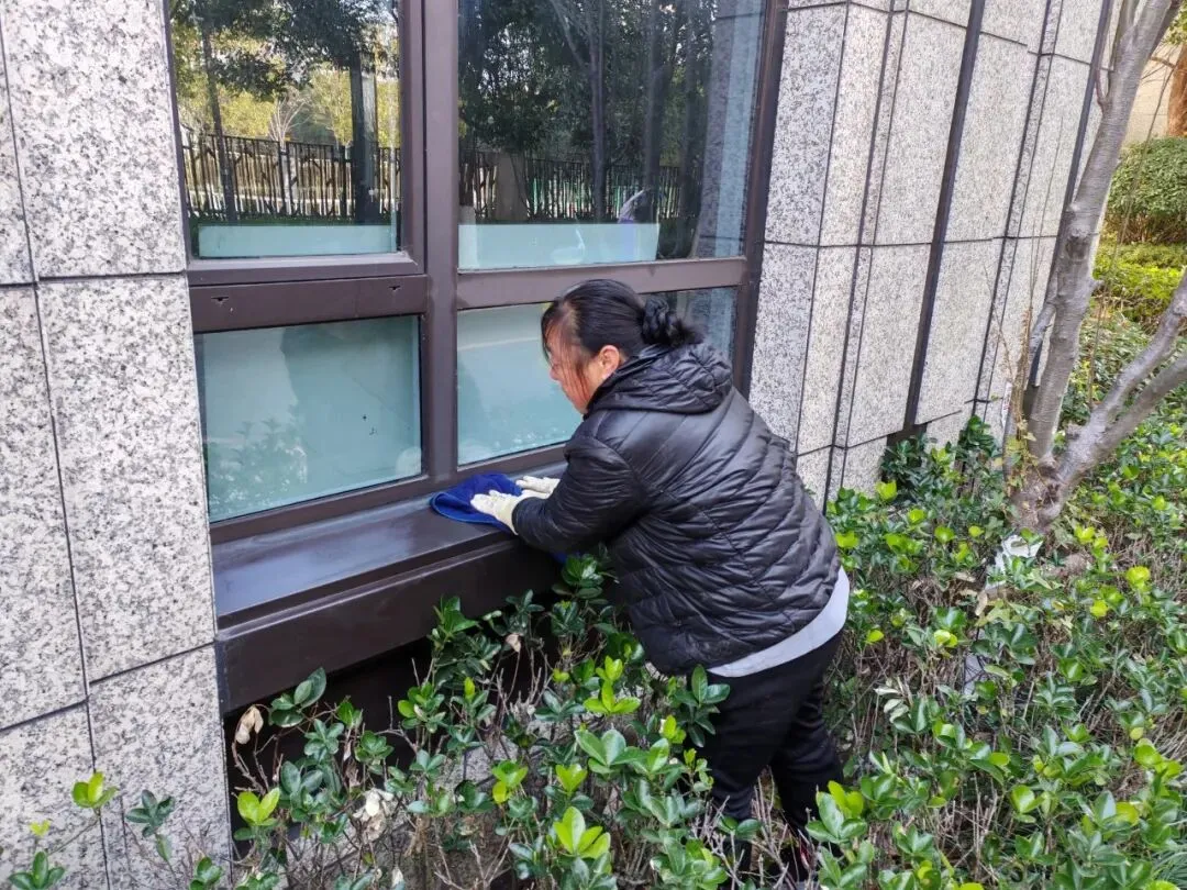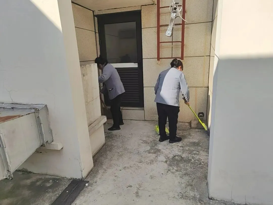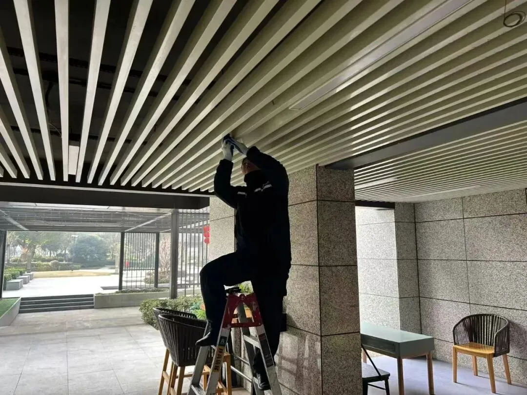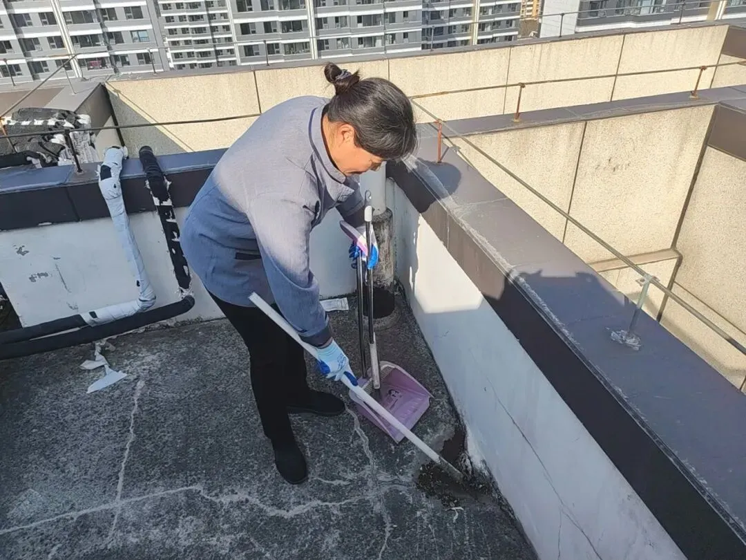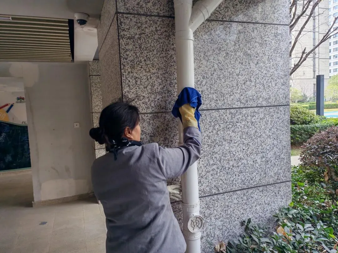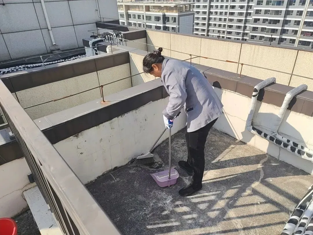 园区日常保洁 — 空架层天花板蜘蛛网清洁、电梯边墙面清洁、楼栋地面清洁、楼栋单元入口天花板清洁、楼栋下水管表面清洁、楼幢入户窗户清洁、顶楼地面淤泥清洁。日复一日,年复一年,默默无闻的工作,为园区带来一份干净,增添一份美丽。