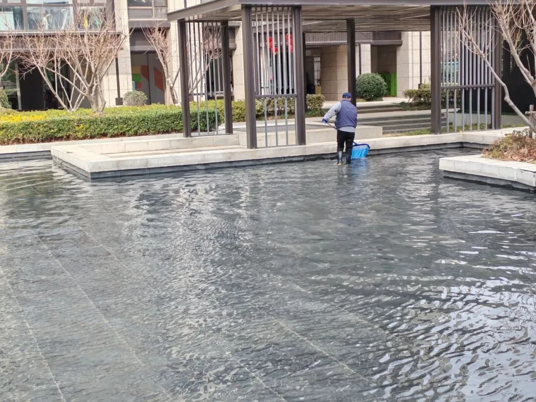 园区绿化带落叶清洁 车库地面清洁 水景池落叶打捞