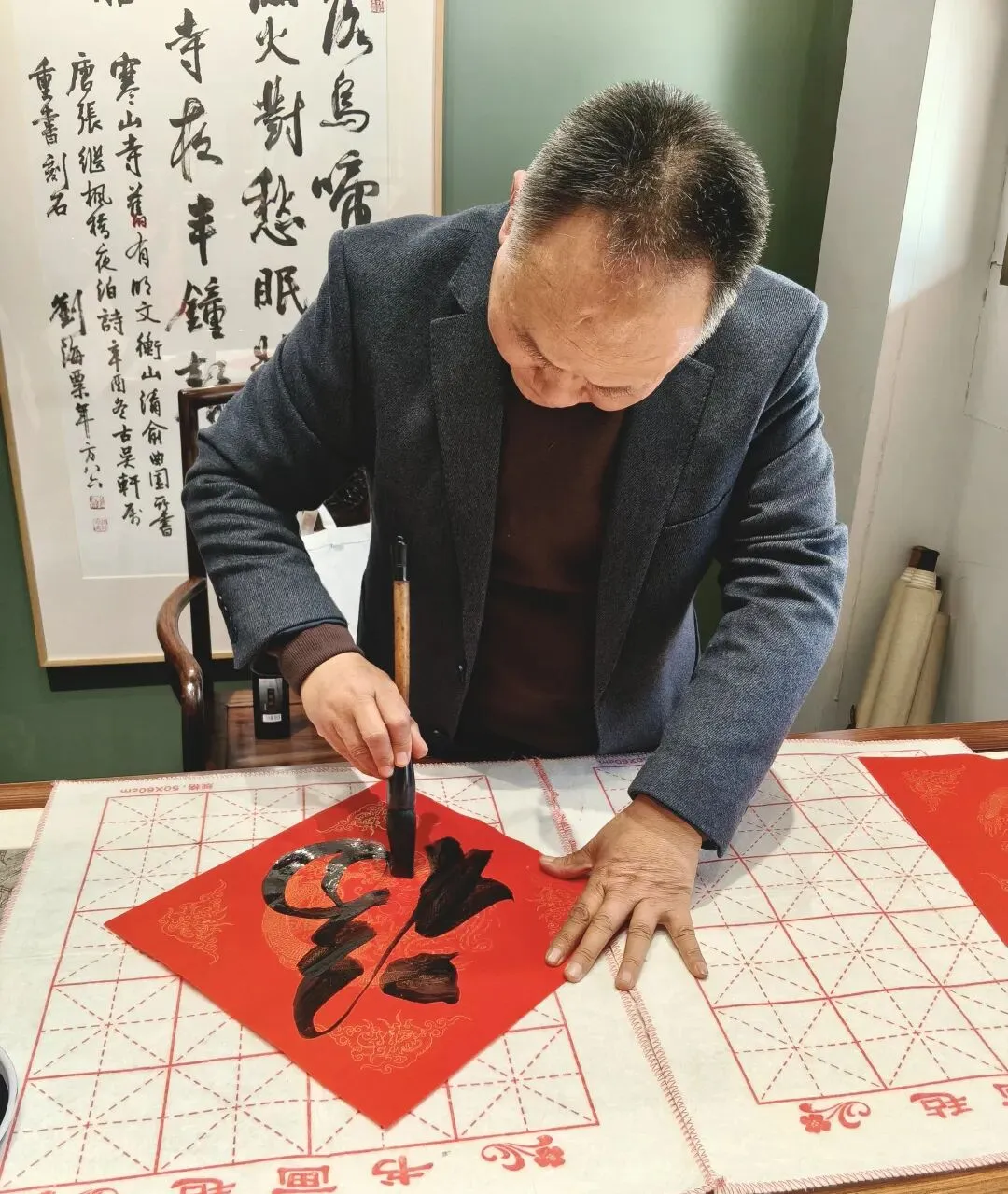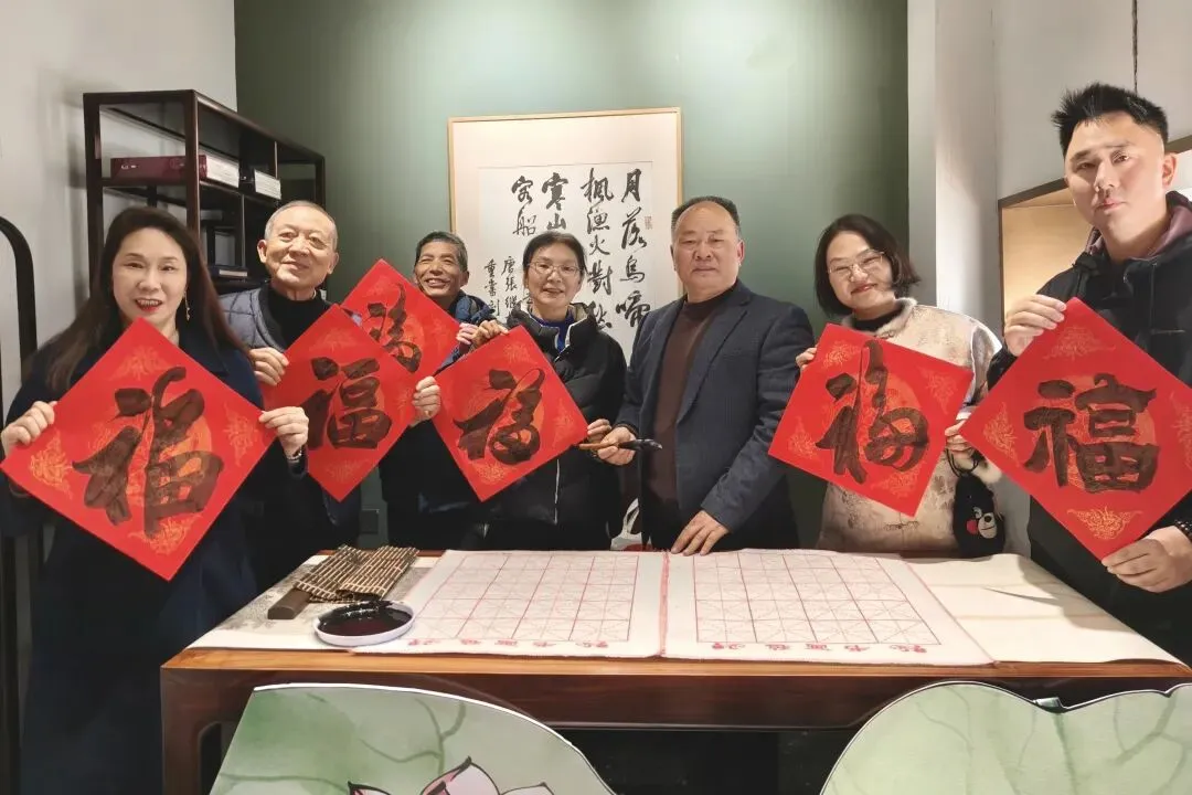 下半场开场,书法家王国兴老师现场挥毫泼墨,一字一“福”,满含温情。他不仅为老苏州群、为大家送出10幅“福”字墨宝,还带来了提前写好的10多副对联,瞬间点燃了全场的热情。