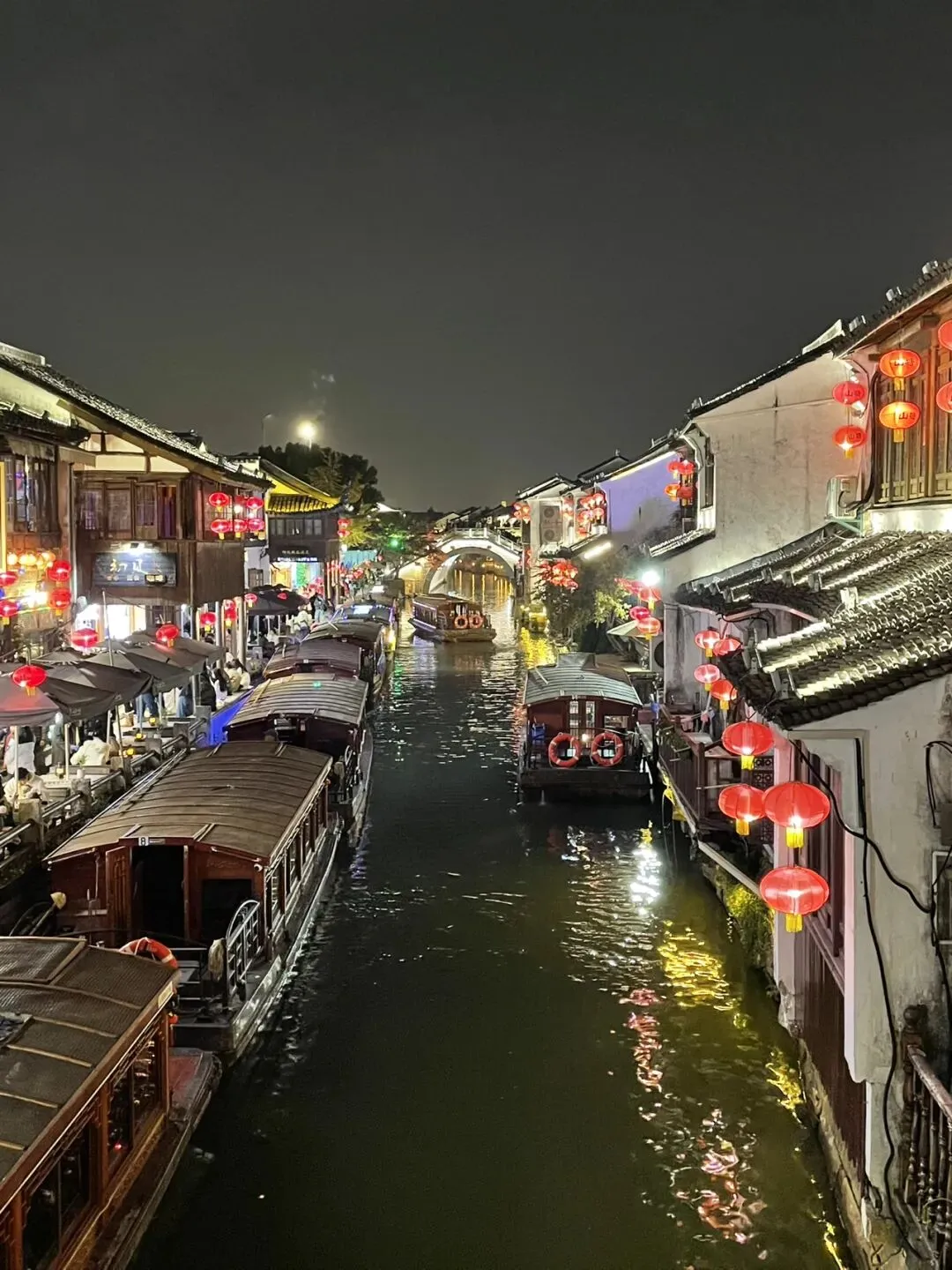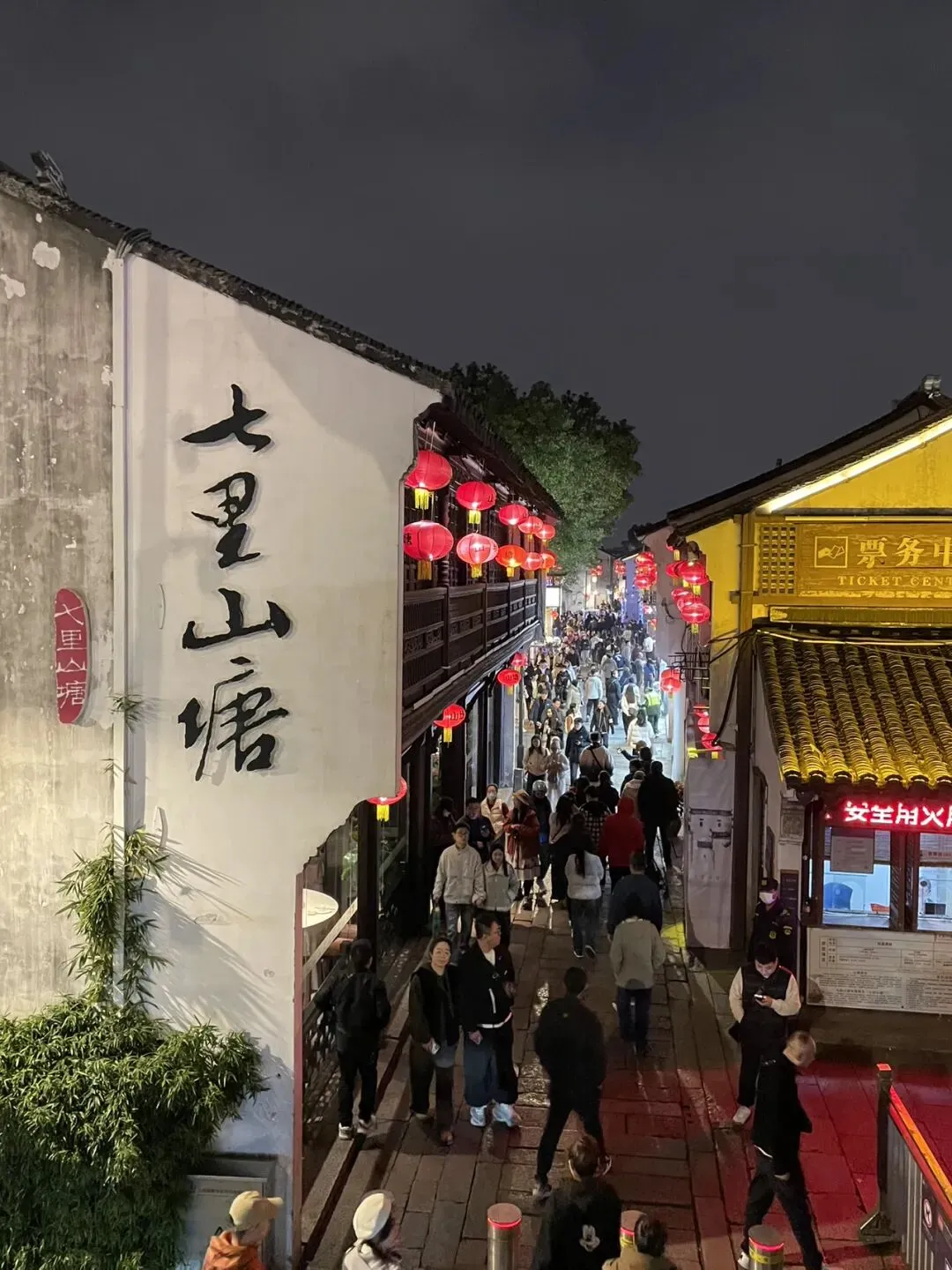 夜幕降临,我们走进了山塘街。红灯笼挂满了街巷,整条街都是人,很热闹。
