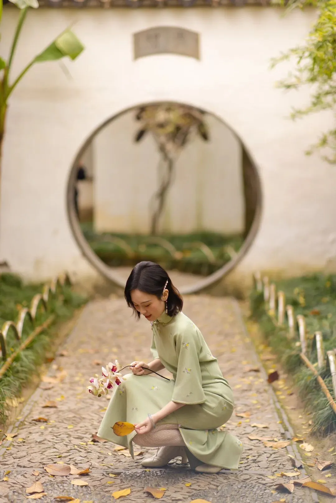 第二天我预约了旗袍写真的拍摄,想着来苏州怎么能不穿旗袍拍一组写真呢。写真地点选择在了沧浪亭,沧浪亭作为苏州最古老的园林之一,景观精致,有曲径通幽的小路、雕梁画栋的亭台,一草一木都像精心勾勒的水墨画。穿旗袍走在其中,自己举手投足也不自觉变得温婉起来。