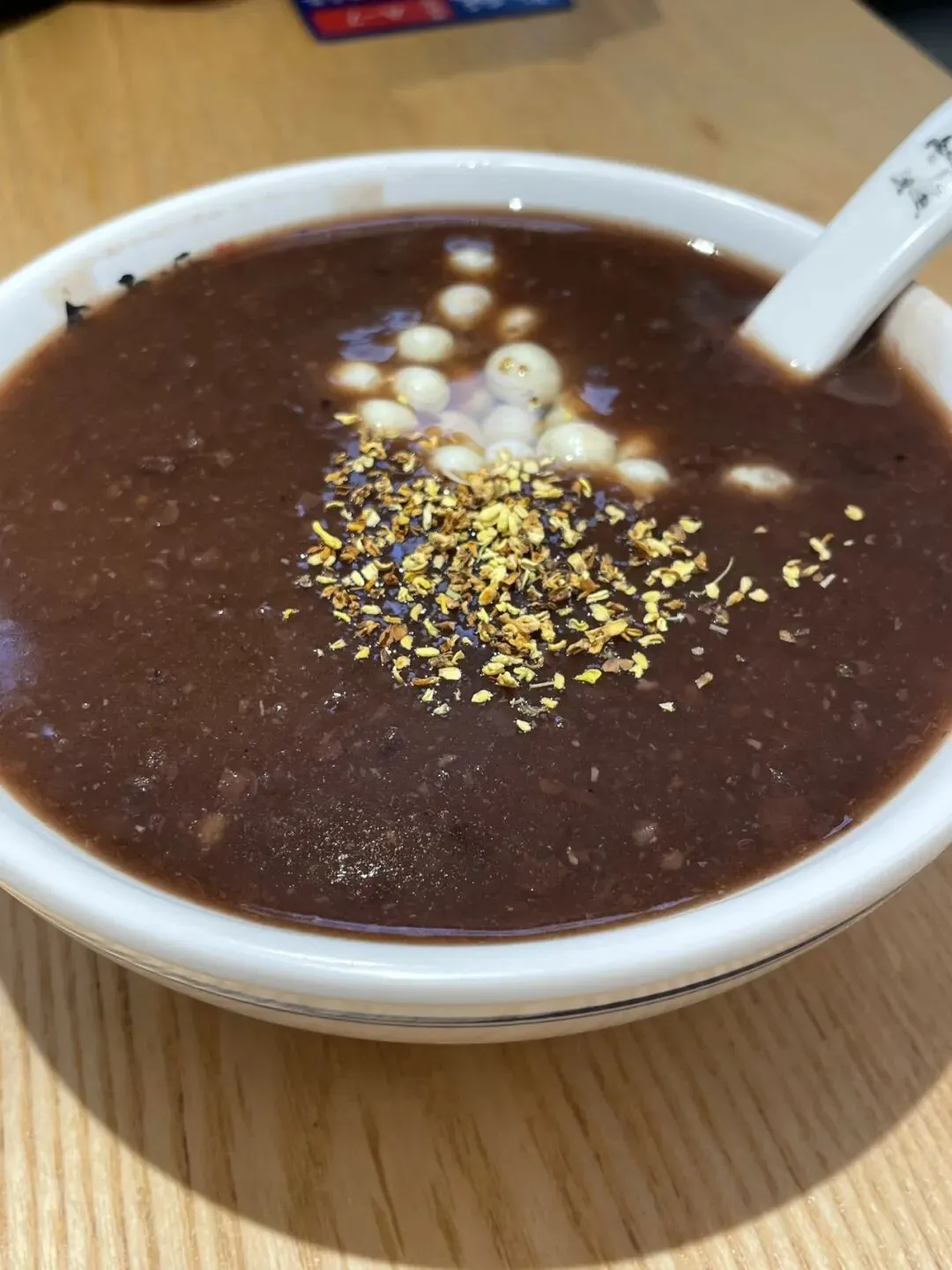 还去了鑫震源吃苏式大虾生煎,馅也是偏甜的,好在汤汁还挺丰富,底部煎得脆脆的。桂花豆沙鸡头米就是一碗热乎乎的红豆沙,鸡头米口感有点像薏米仁,冬天吃一晚豆沙鸡头米还挺暖胃的。