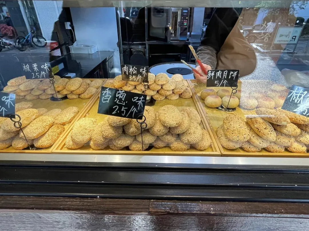 老万全,蟹壳黄真的是酥得掉渣,葱油口味是咸香口的,有点像葱香味苏打饼干的味道。