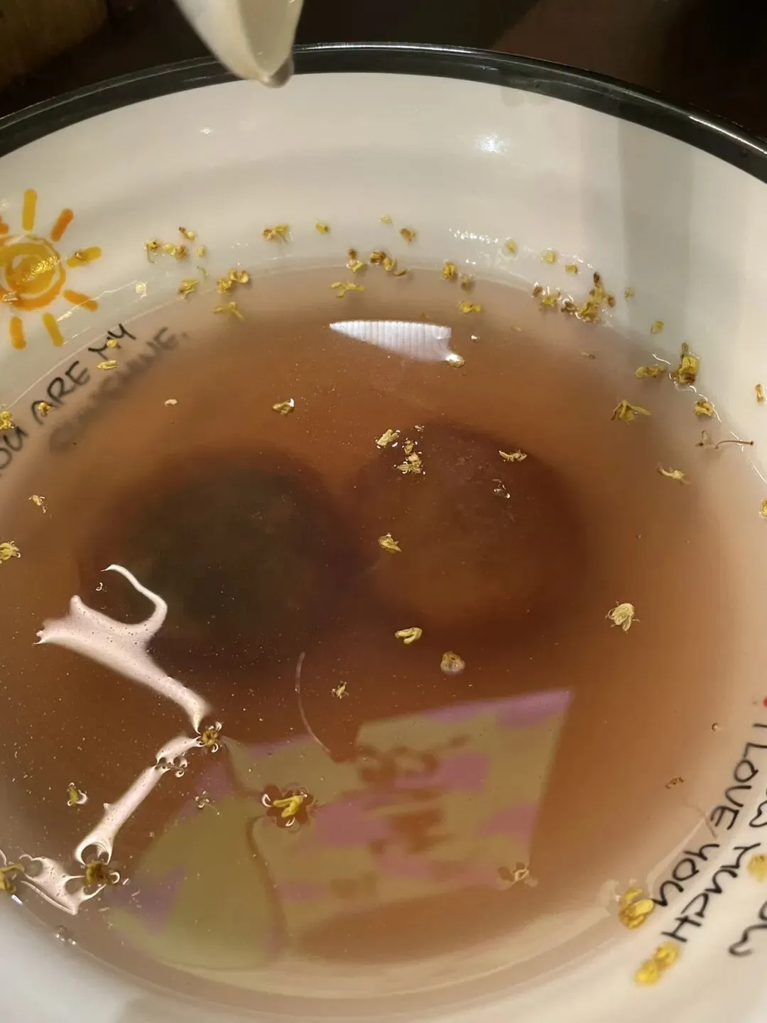 杨小盼的藕,点了藕粉丸子。藕粉汤味道是淡淡,不会很甜。藕粉丸子口感和汤圆类似,只是丸子皮是用藕粉做的。丸子馅是荠菜和板栗两种口味,我更喜欢甜口的板栗,可能藕粉还是和甜的东西比较搭。