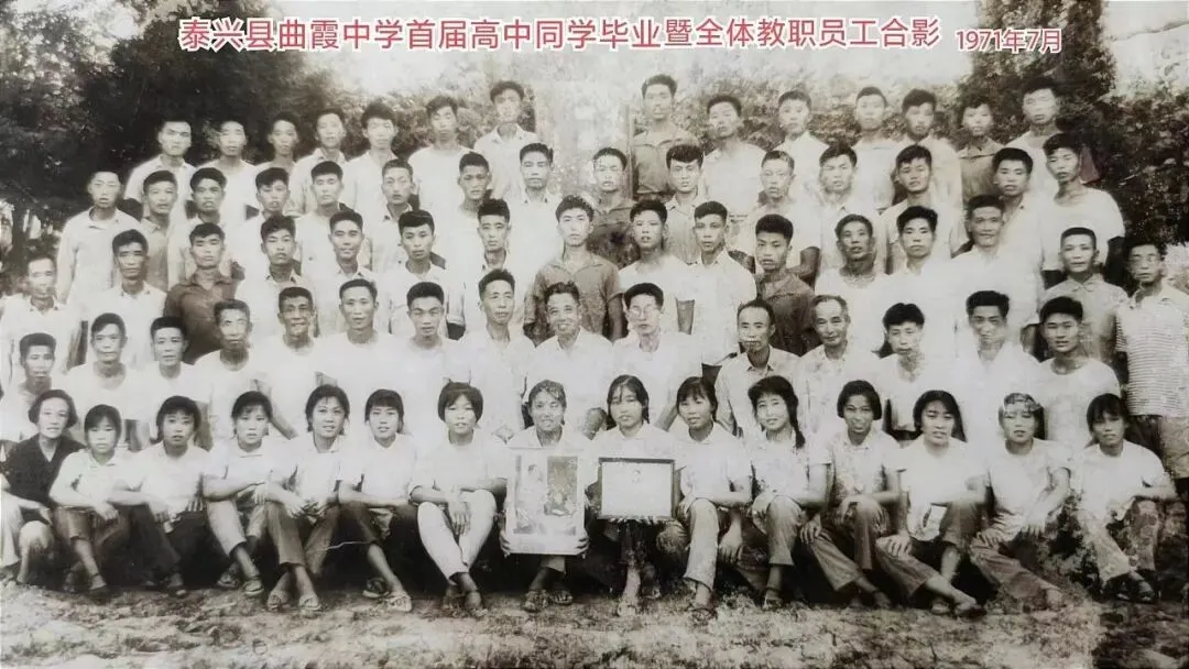 1974年小学毕业的时候,学制又从春季入学变成秋季入学。这样我的五年级也读了一年半。当时我们镇上有两个初中,在河对面隔河相望,河北是曲霞中学的初中部,来自周围大队的同学都在那儿读。我们曲霞镇的同学在曲霞五七学校的初中部,班主任叫赵国平,是曲霞中学73级的学长,1977年和我们一起高考,后来担任泰州市商务局局长,2018年我回国时和他通过电话。