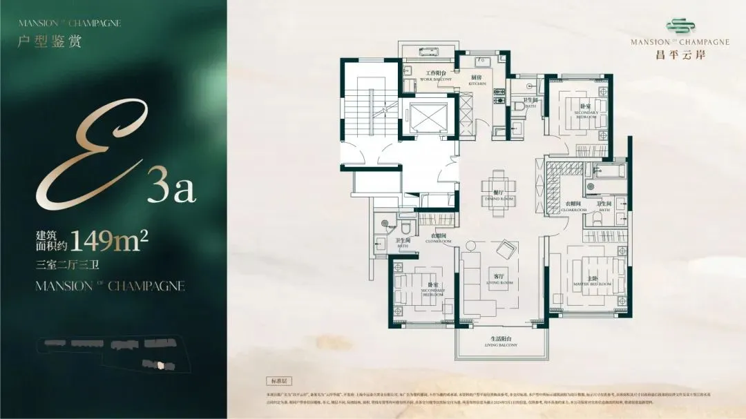 建面约149㎡3房2厅3卫户型▼