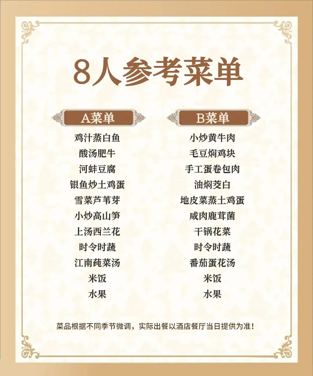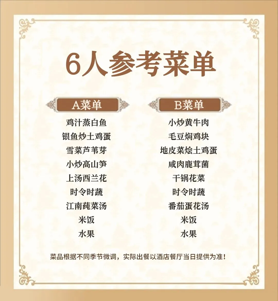 3.菜品以实际到店为准,严禁带熟食进入餐厅;