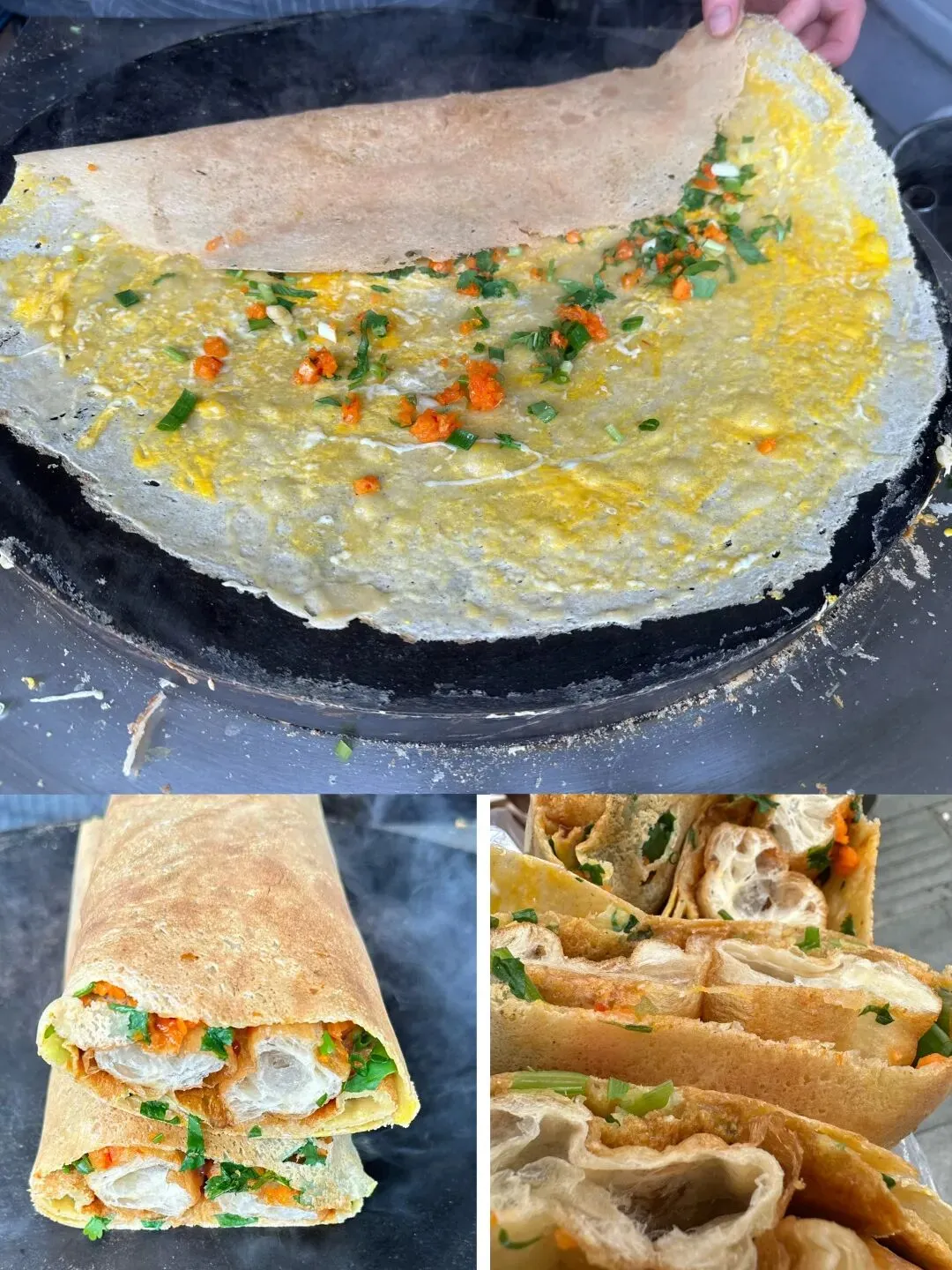 她知道我们每次都不加辣椒,就问还是不加辣椒哈,我说是的。一会儿,两个煎饼果子好了。我和老公一边吃一边去地铁站。嗯,真得好满足。