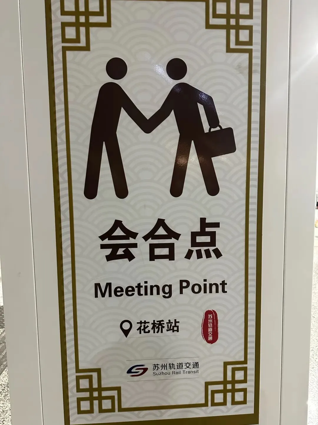 到达花桥站后要下地铁换乘,换乘苏州11号线,这个换乘好有趣。花桥站是上海11号线与苏州11号线的汇合点,墙上还贴了手拉手汇合点拟人化图,真的好友爱。