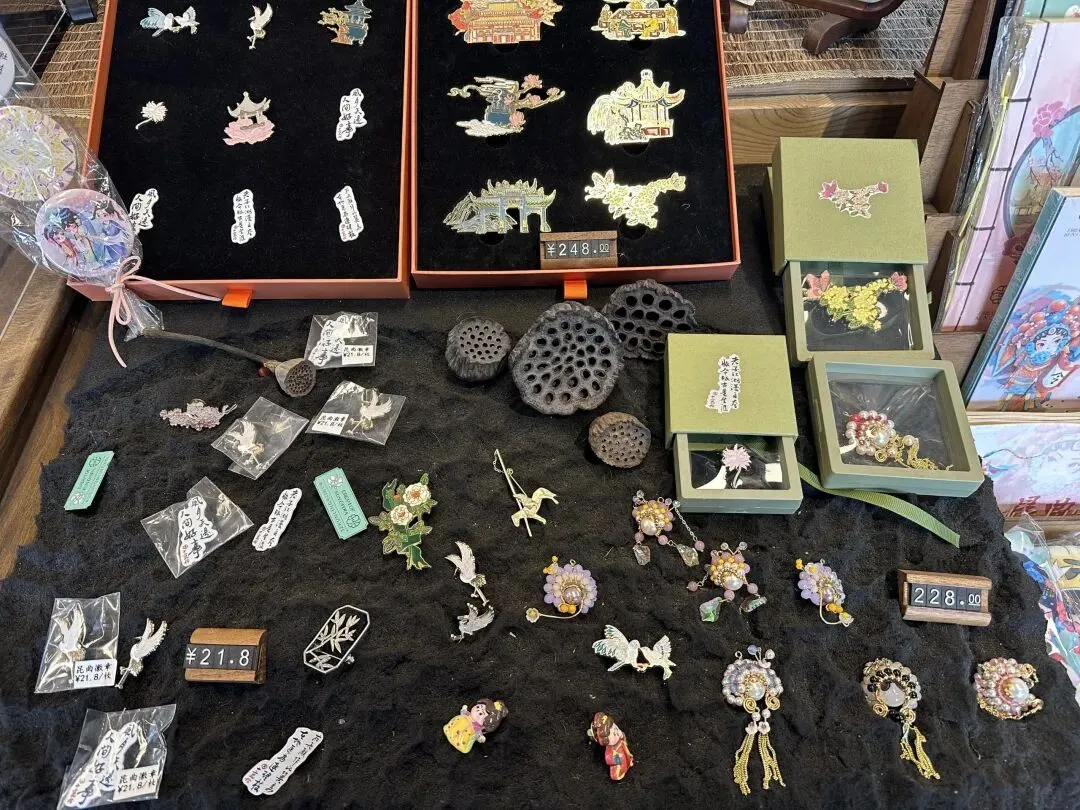湖水清澈见底,可以看到水底的海藻一对黑天鹅亭林园里面有个“十二昆伶茶院”,我和老公进去逛了下,茶院也充满古色古香,还十分有趣。“十二昆伶”是个品牌,诞生于昆山,灵感来源于昆曲,包含昆曲扇面、昆曲书签、昆曲包等很多个产品。