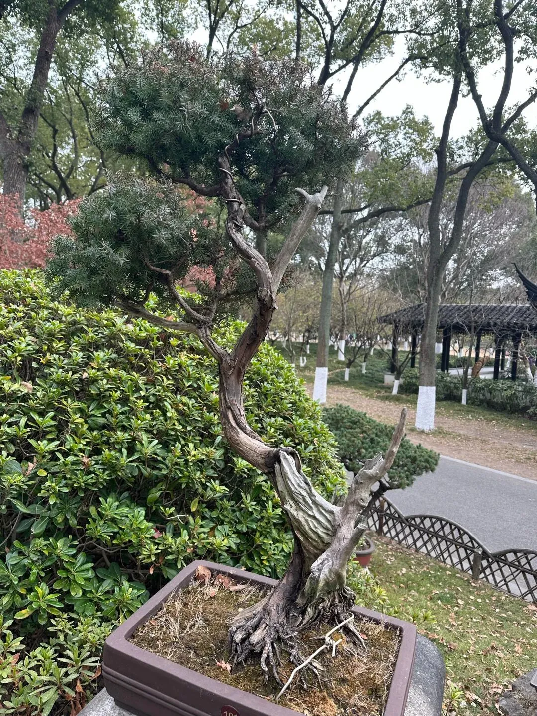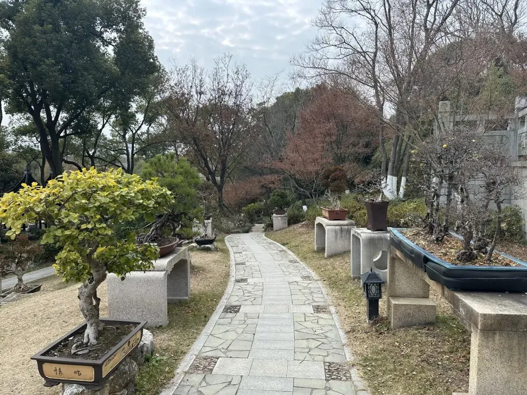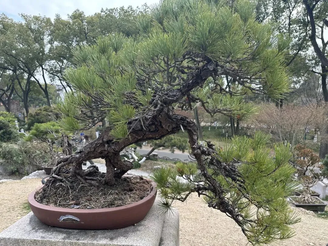 爬山途中有很多盆景,风格各异,觉得松树盆景很好看。