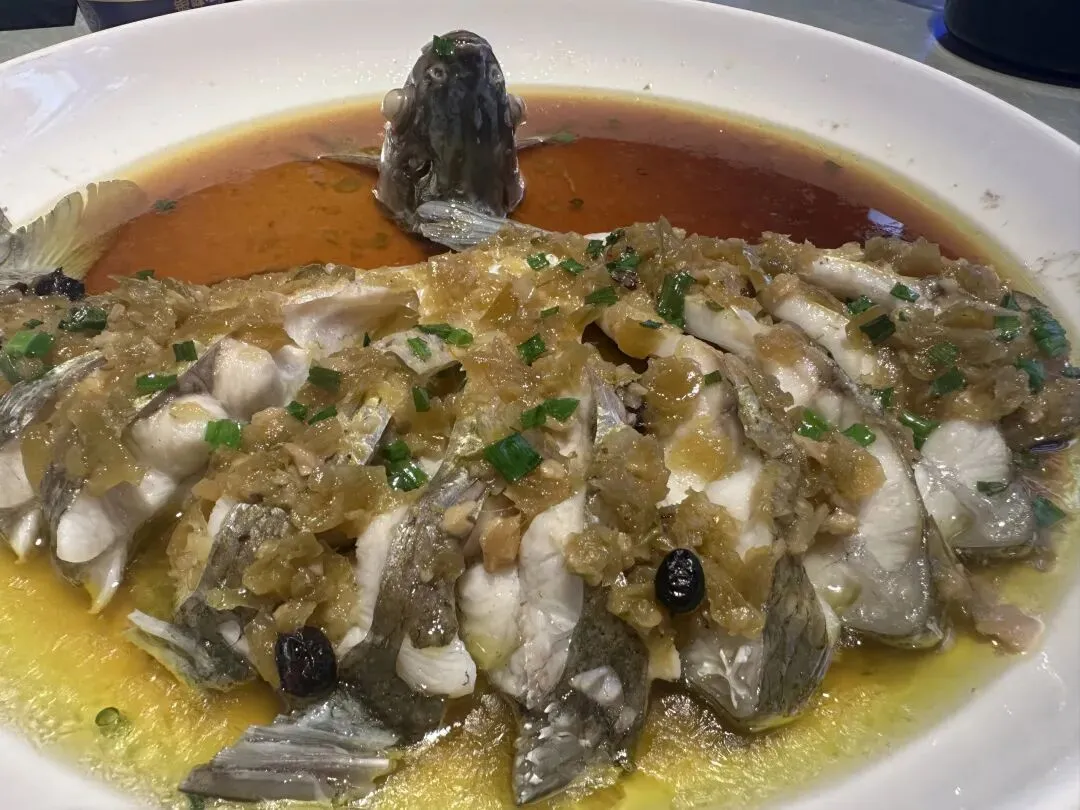 走到老鹅馆我们点了一份双人套餐,三个菜,有店里最招牌的“铜盆红烧老鹅”,另外两个6选2,我们选了“椒汁鳊鱼”和“老汤笋干”。