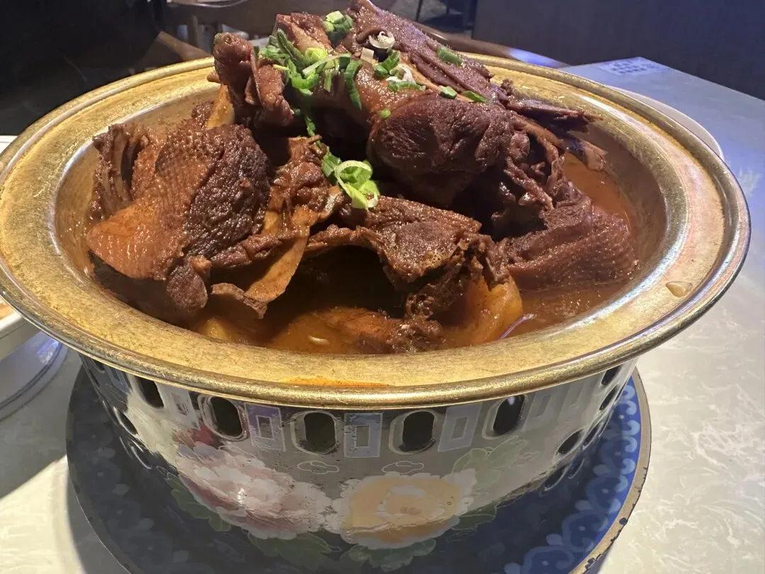 三个菜都很好吃,没有一个踩雷的。特别是老鹅,肉质劲道又软烂,很是入味,连里面的配菜土豆都特别好吃。我老公说这么一大盆鹅肉,在上海怎么也得300块吧,而且不一定好吃。我说,这么说花钱还赚钱了,哈哈哈。