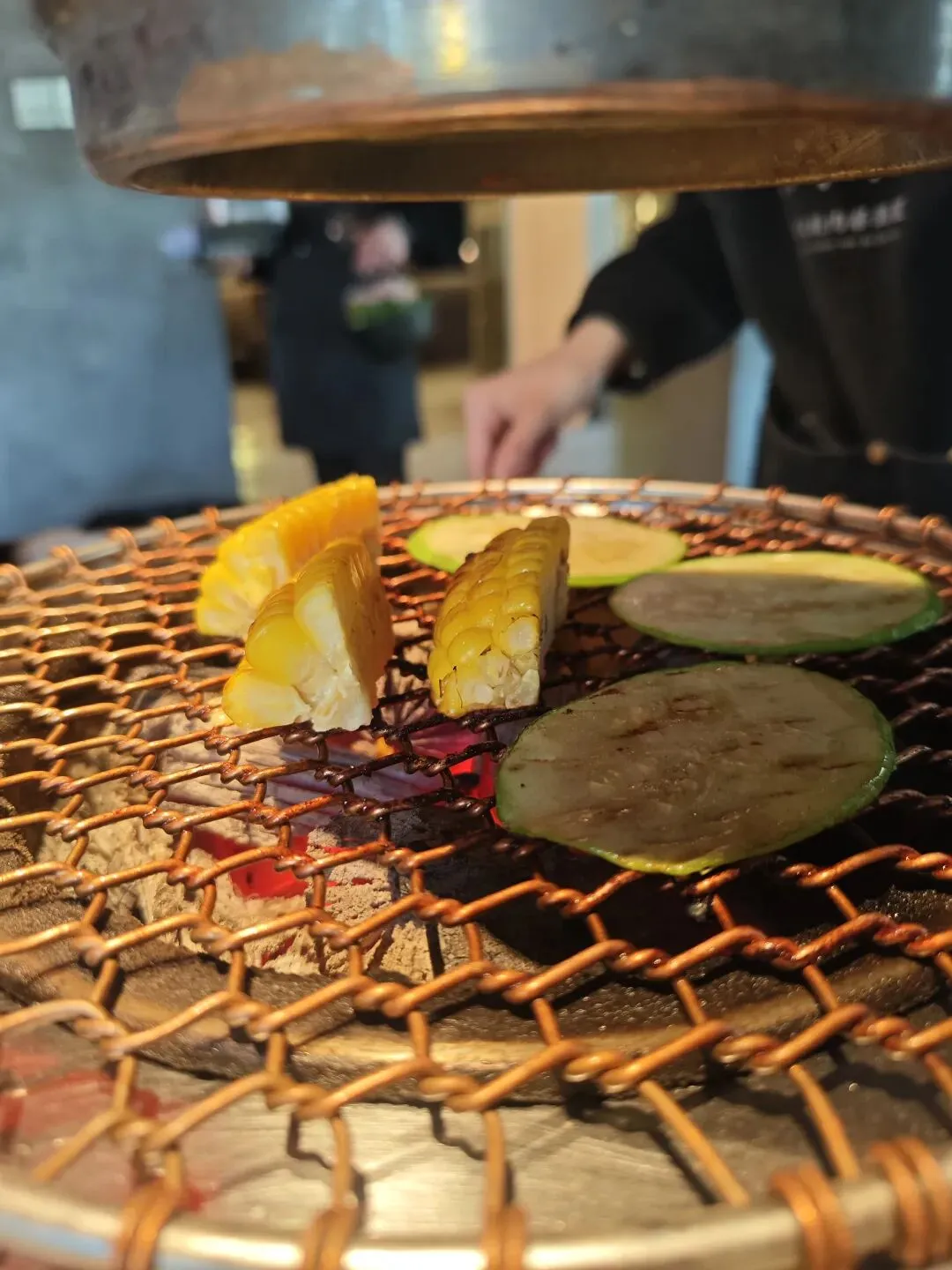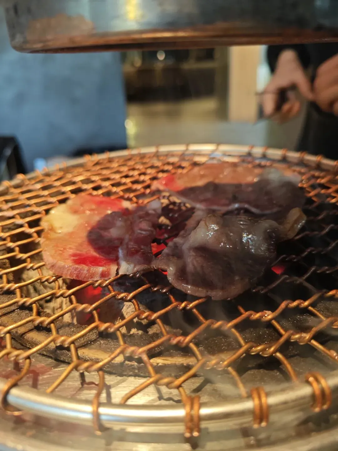 全家直奔常去的那家烤肉店。店里的小哥哥小姐姐全程帮我们烤肉,我们只管围坐在桌边,聊着天等着投喂。