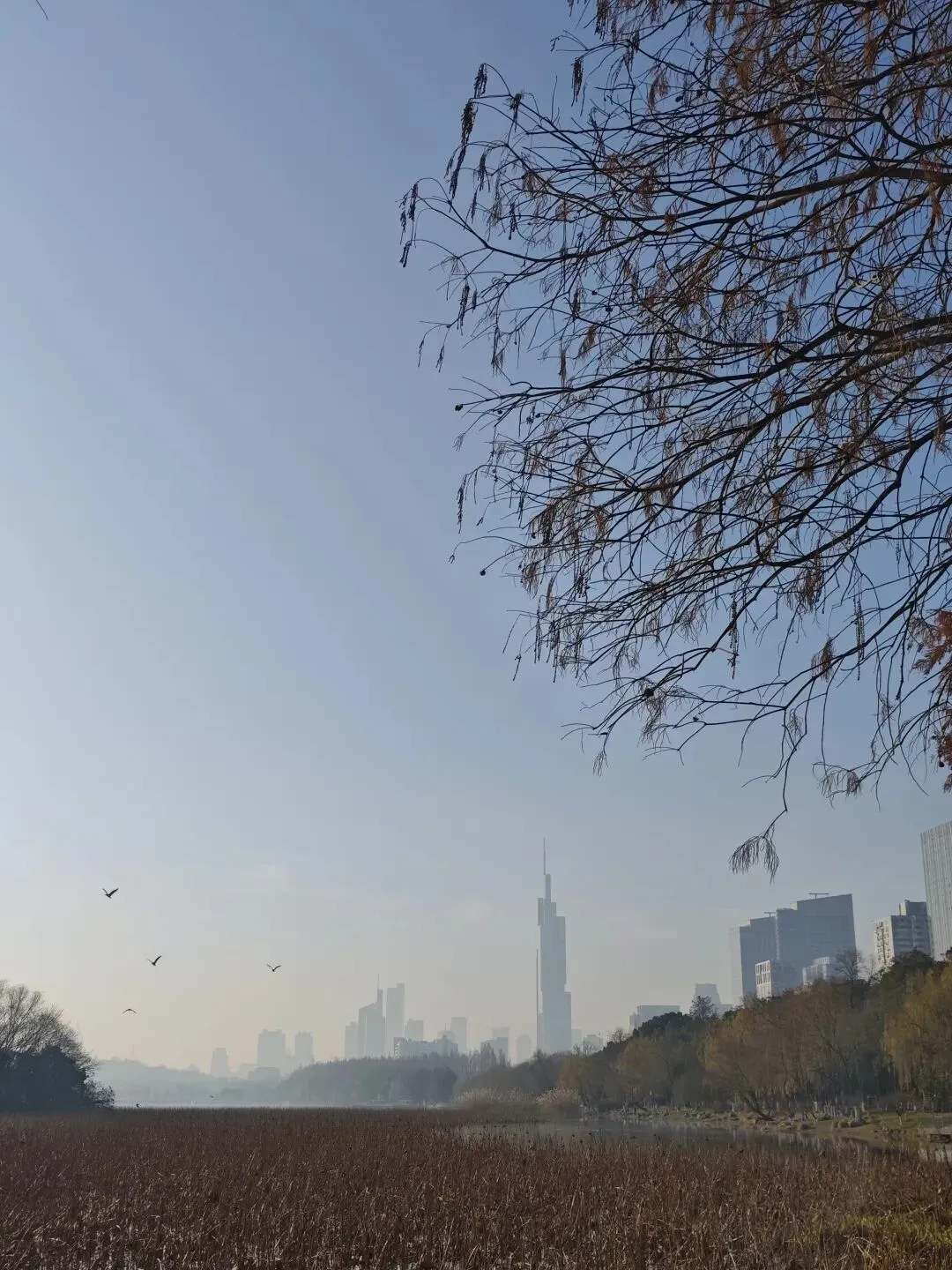 走着走着,才发现岸边的腊梅和桂花正悄悄争艳,淡雅的梅香混着清甜的桂香,丝丝缕缕飘入鼻腔,让人忍不住深吸一口气——原来冬日的南京,藏着这样沁人心脾的甜。