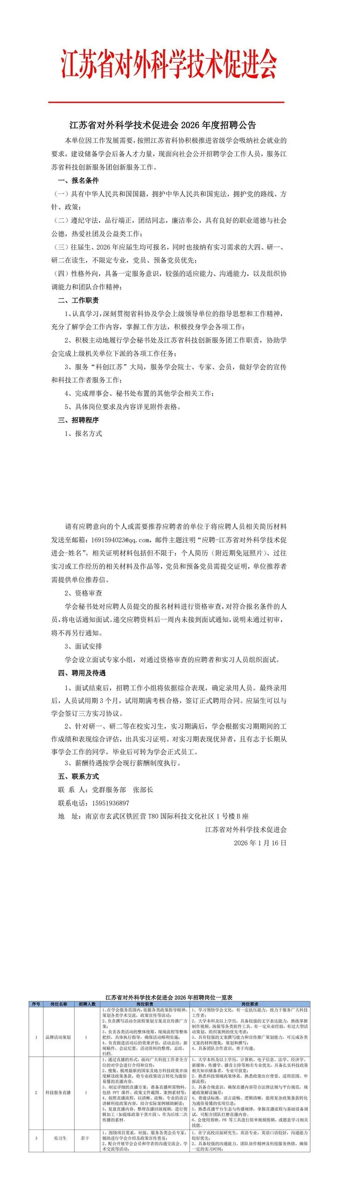 南京事业单位招聘 | 江苏省对外科学技术促进会2026年度招聘公告