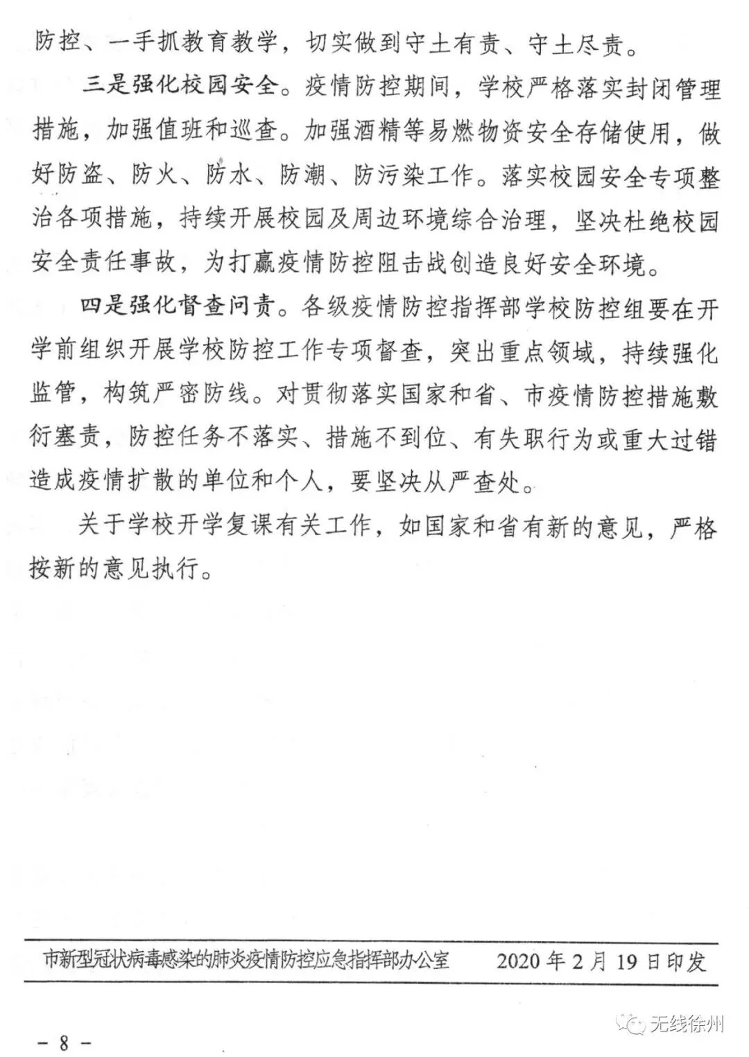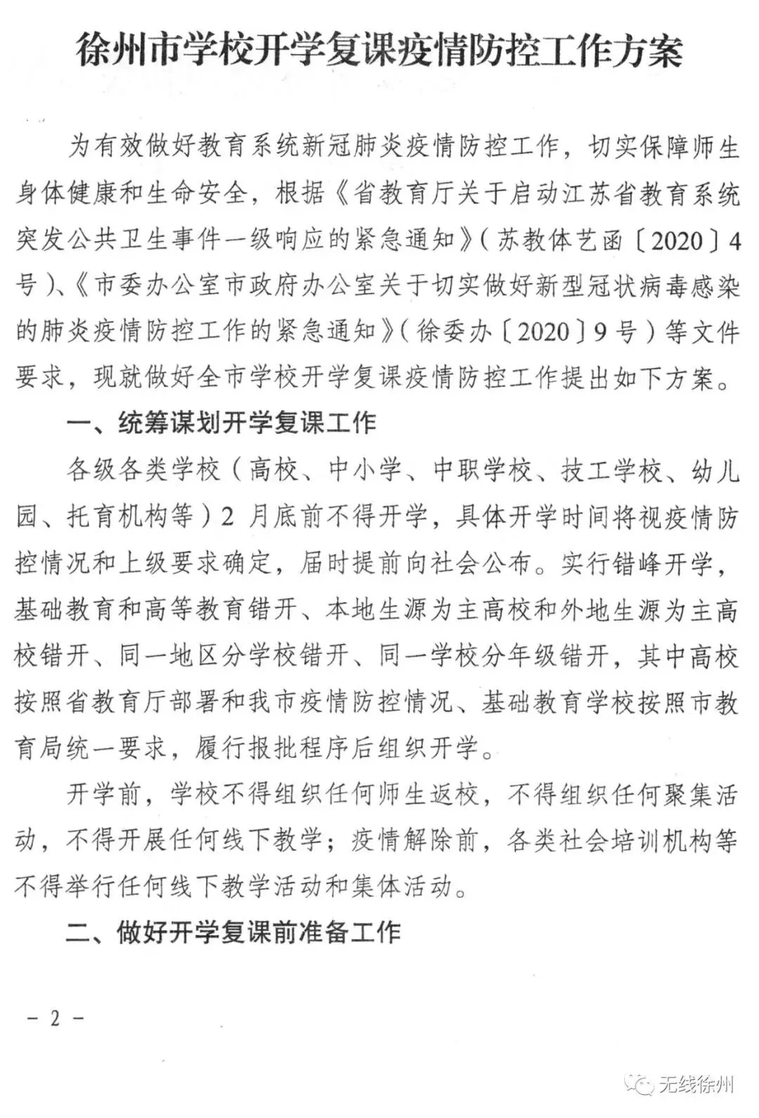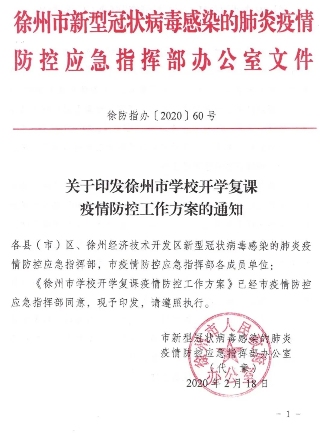 近日,徐州市新冠病毒疫情防控应急指挥部办公室发布全市学校开学复课疫情防控工作方案,统筹谋划开学复课工作。