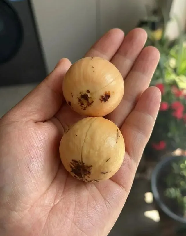 然后呢 , 撕掉那层褐色的外皮 , 撕不动就泡一两天 , 等它自己裂开再撕 , 千万别硬来 , 伤了果核就白搭了。