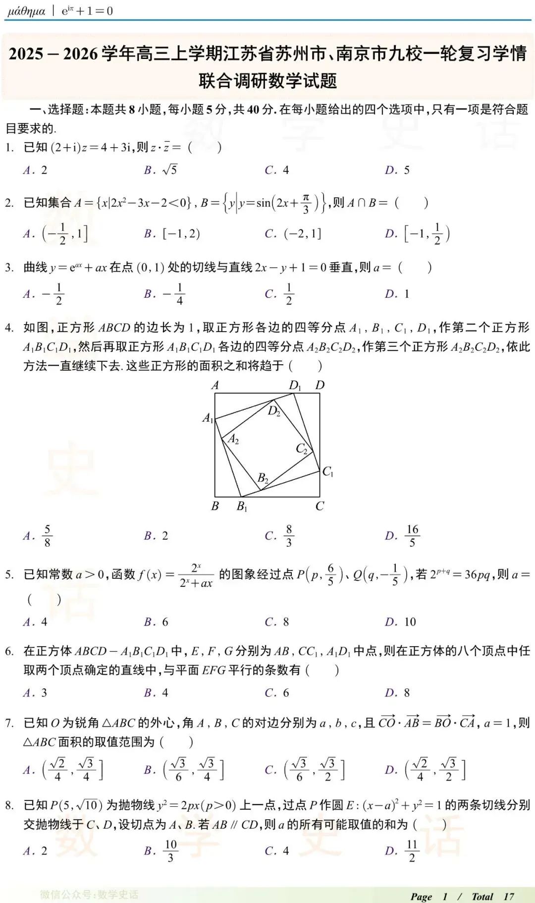 ②为方便Q友查找群文件,本公众号所有文件在QQ共享群里均有唯一编码.本系列在QQ群里的文件编码:【MathsSPA26011901】