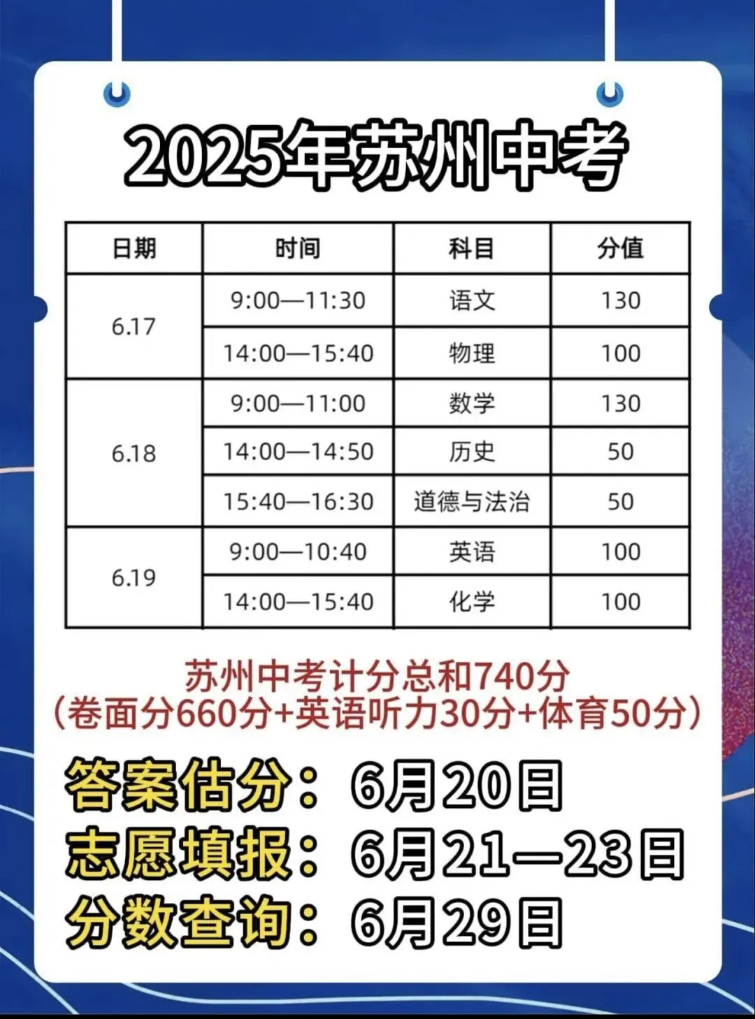 2026苏州中考时间轴