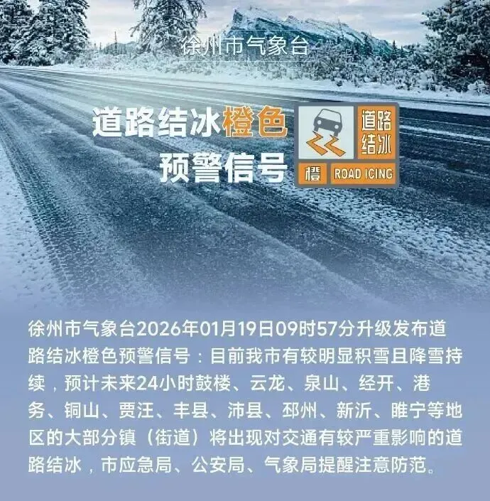 市气象局预报我市本次降雪过程最大积雪深度2~4厘米,将出现明显影响道路结冰。根据《徐州市扫雪除冰应急预案》有关规定,经会商研判,决定自1月19日10时20分起启动市扫雪除冰三级应急响应。请各地区各单位按照预案要求,做好扫雪除冰各项工作,切实保障正常生产生活秩序和群众生命财产安全。