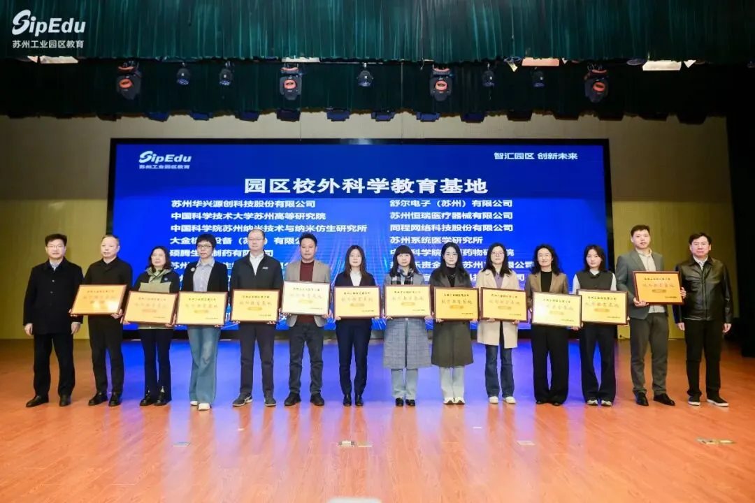 会议现场,苏州市过敏科普馆有幸荣获苏州市工业园区青少年校外教育基地(科技类)授牌。