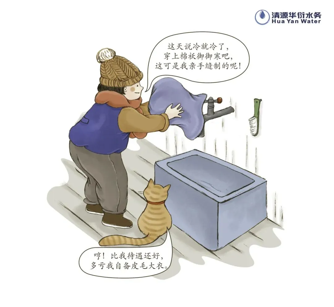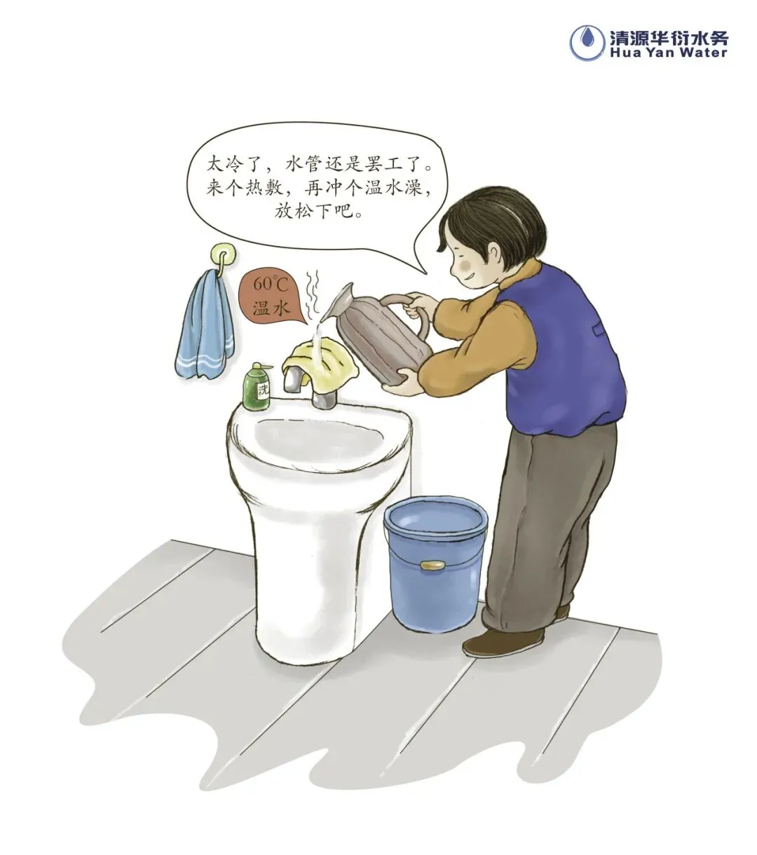 若发现水表表面、水表接头及水管冻裂,请及时与物业公司联系或拨打清源华衍24小时供水服务热线69111000,或关注微信公众号“水之道苏州清源华衍水务”报修。